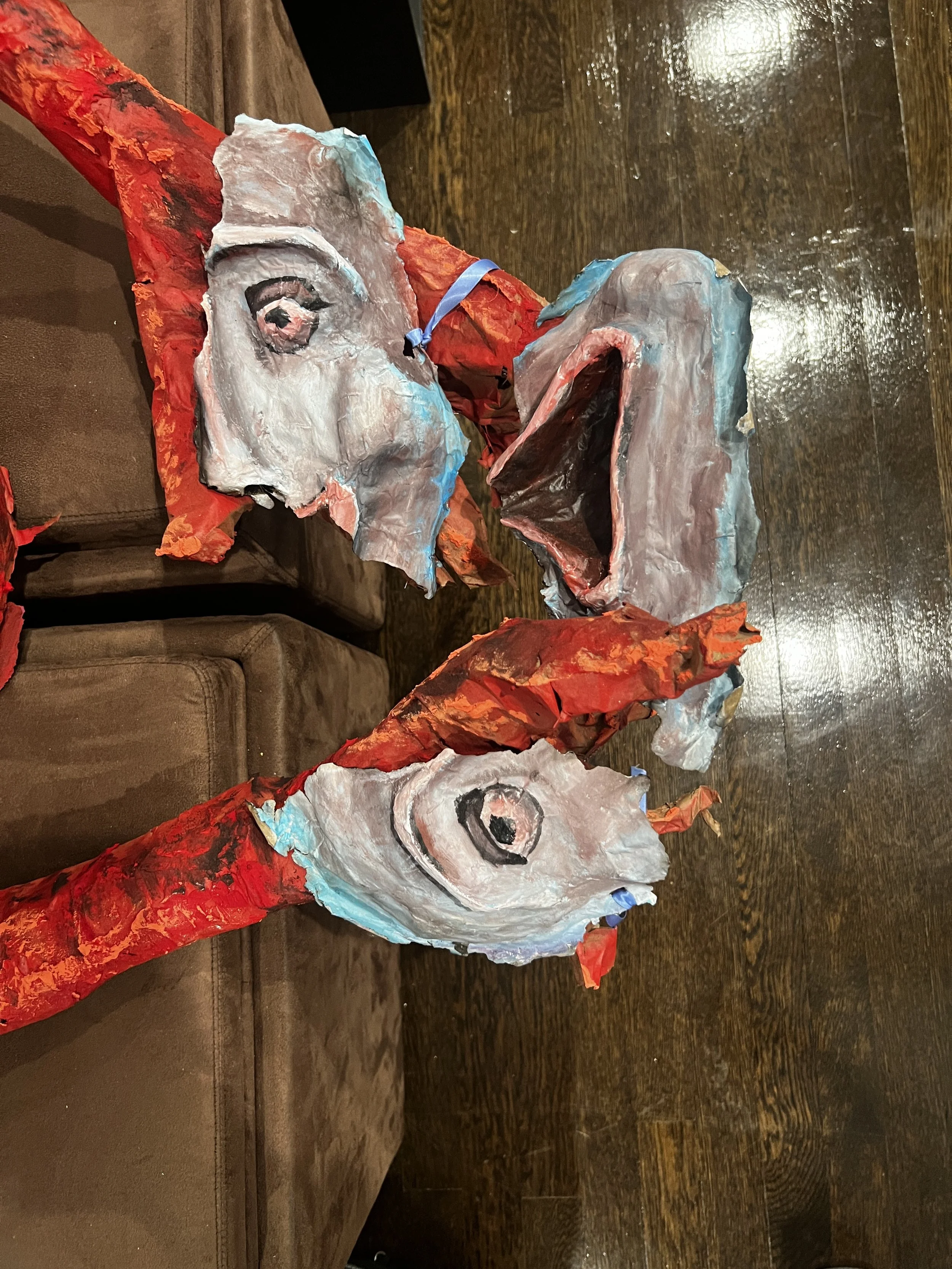 Wearable Clown Mask (2024) (Paper Mache, Acrylic Paint, and Air Dry Clay)